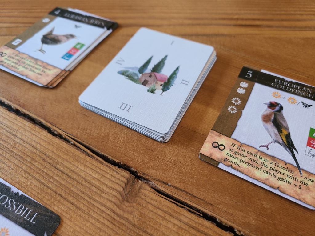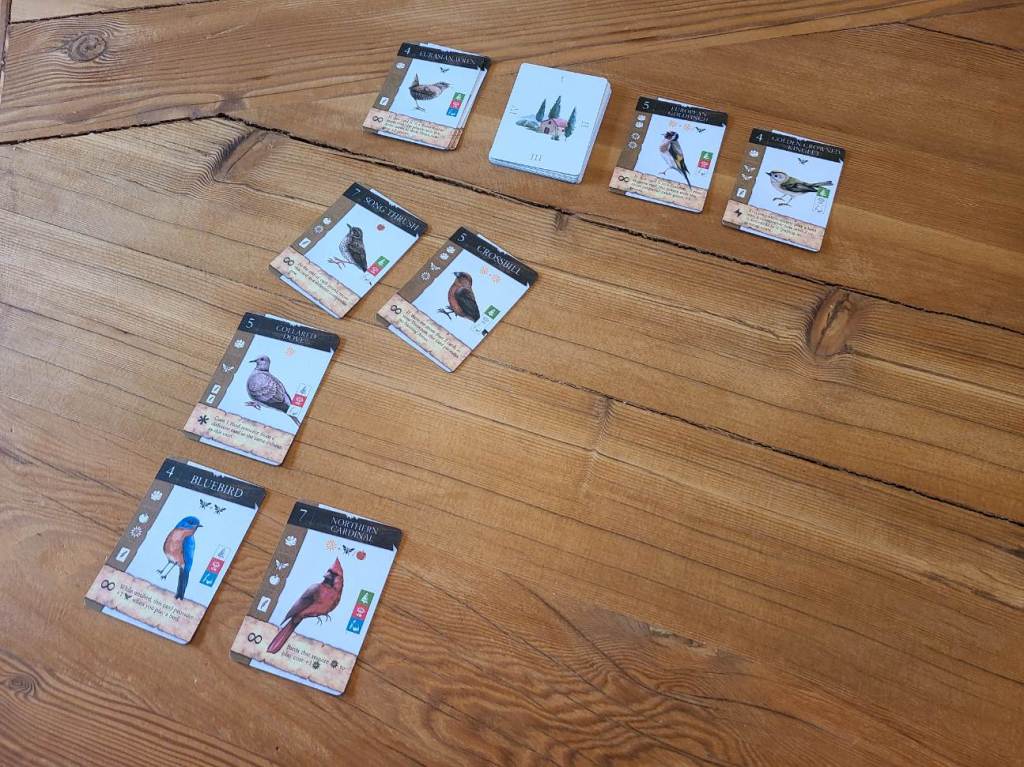 Birdscaping uses familiar Euro mechanisms including engine building, tableau building, hand management and card drafting.