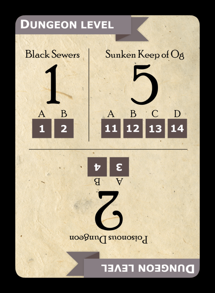 One Card Dungeon by one of my favorite indie designers, Barny Skinner, has amazing tactical depth for a one card game. Truly amazing. The game requires dice to play, but I wanted to be able to keep it in my wallet and not need to have dice on hand, so I designed these “dice” tokens. You can “roll” them by shaking them up in your hands and casting them onto the table (Runebound 3e style). The number that is pointing North is what you rolled. I stuck these tokens into a sleeve with the card and it rides around in my wallet with me.